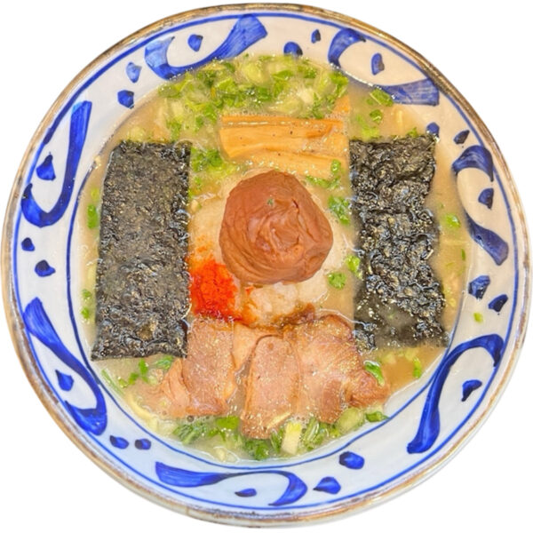 がんこやかるがんの代表作。大根おろしのやさしい風味と梅干しの酸味がスープに溶け込み、深みのある旨味を引き立てる。あっさりしながらも満足感のある、上品な味わいの一杯。